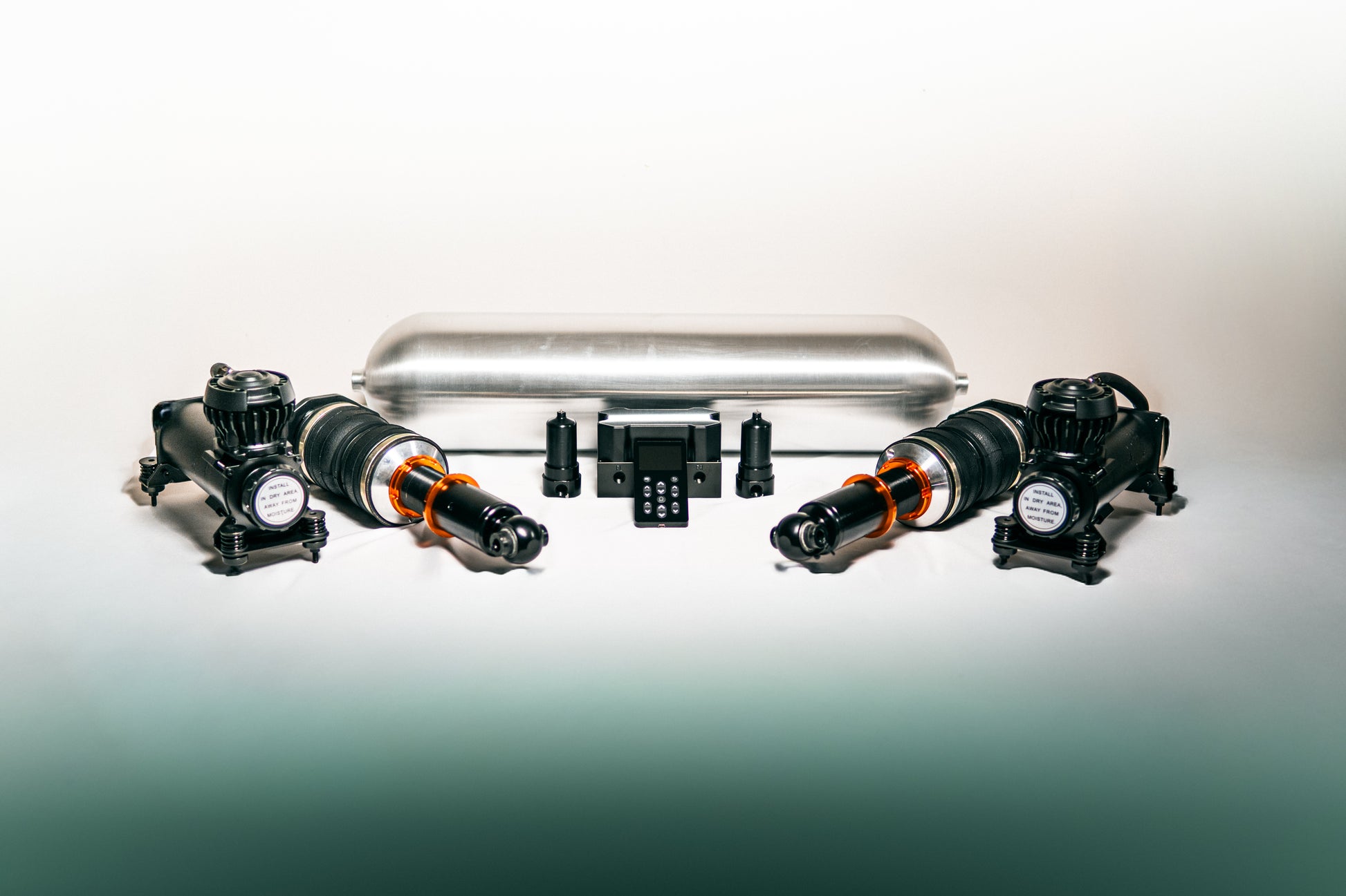 This setup includes high-quality air struts along with the required air management components. Depending on your selection, tank size and pump configuration can be chosen before checkout.